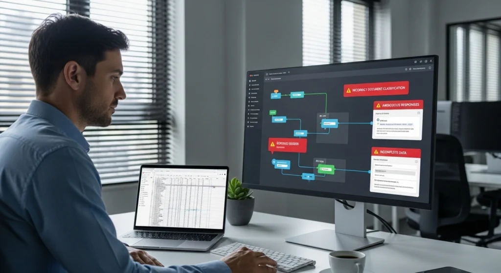 No Brasil, isso pesa ainda mais quando o processo envolve português coloquial, variação regional, documentos mal digitalizados e sistemas legados. O que funciona bem em um fluxo limpo pode falhar bastante em ambientes com cadastro antigo, planilhas soltas e comunicação por múltiplos canais.
