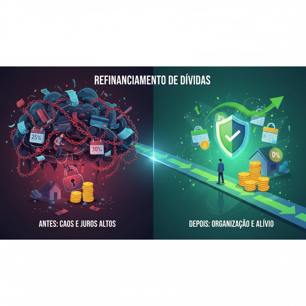 O refinanciamento de dívidas é muito mais do que simplesmente trocar uma dívida por outra. Trata-se de uma estratégia financeira inteligente que permite consolidar múltiplos compromissos financeiros em uma única operação, geralmente com condições mais favoráveis. Imagine substituir cinco ou seis boletos mensais por apenas um, com juros menores e prazo de pagamento mais adequado à sua realidade. Essa transformação pode representar a diferença entre o caos financeiro e a tranquilidade para planejar seu futuro.